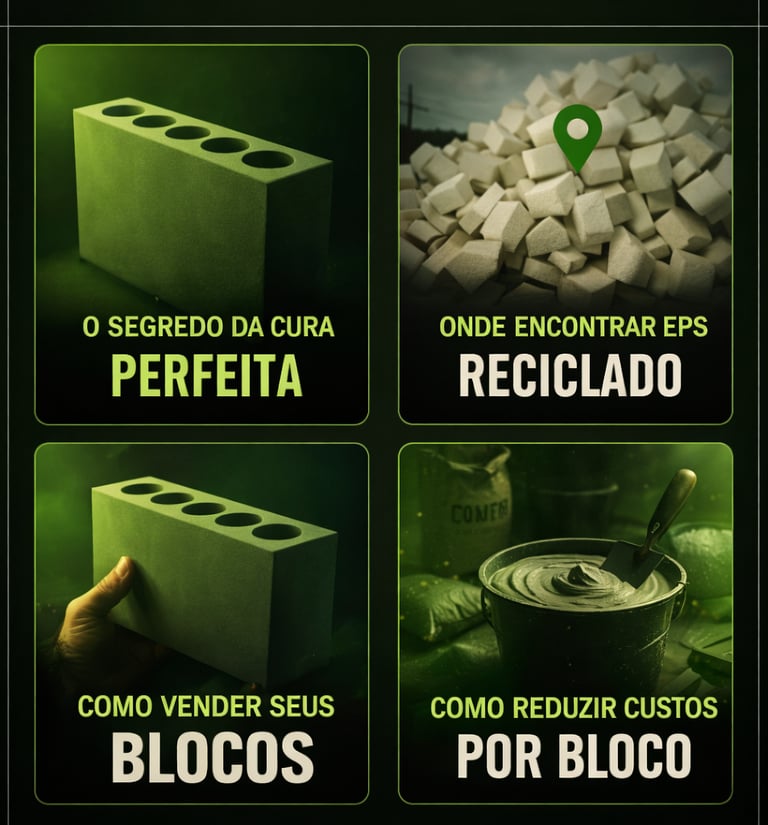 Aprenda o método simples (da massa ao bloco) e transforme isopor reciclado em blocos gigantes de concreto!