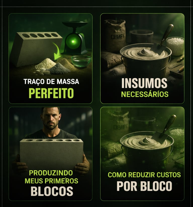 Perfeito para quem deseja construir casa, muro ou deseja abrir seu próprio negócio, você aprende a criar blocos 4x maiores.